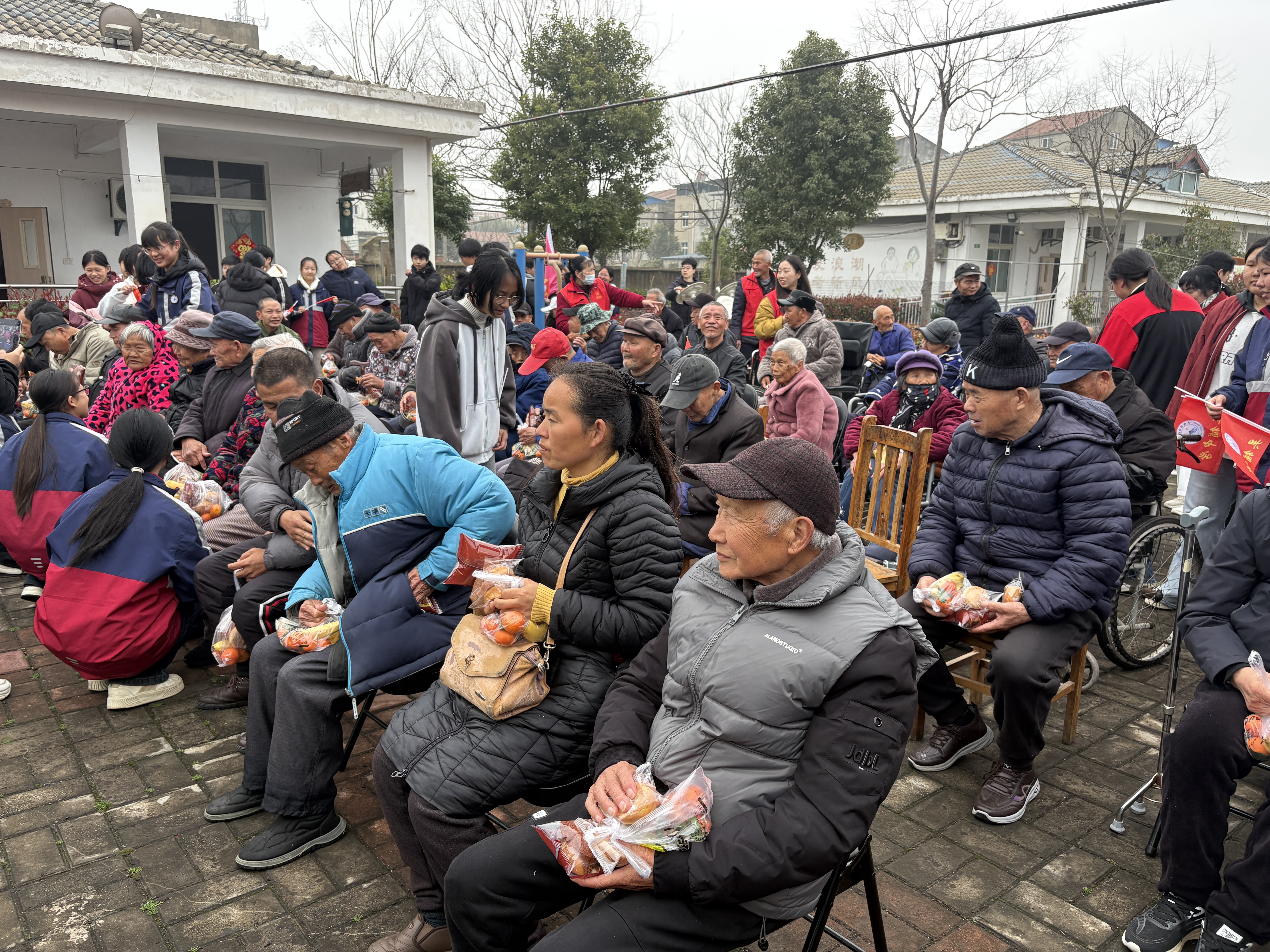 文艺汇演环节,学生志愿者们带来了精心编排的歌舞节目。节目贴合老年群体喜好,节奏舒缓、氛围温馨,精彩的表演赢得了老人们的阵阵掌声。师生代表还向老人们赠送了慰问物资,一份份爱心物资,让老人们真切感受到来自校园的温暖。