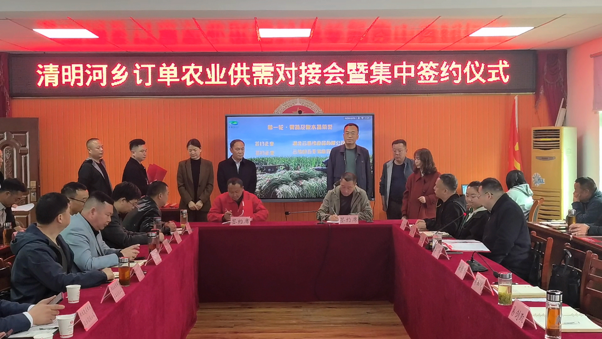 签约仪式上,湖北云香缘食品、绿健现代农业等十家企业与清明河乡达成多品类、全方位的订单合作,涵盖果蔬、粮油、酱菜等农产品种植及劳务保障等领域。