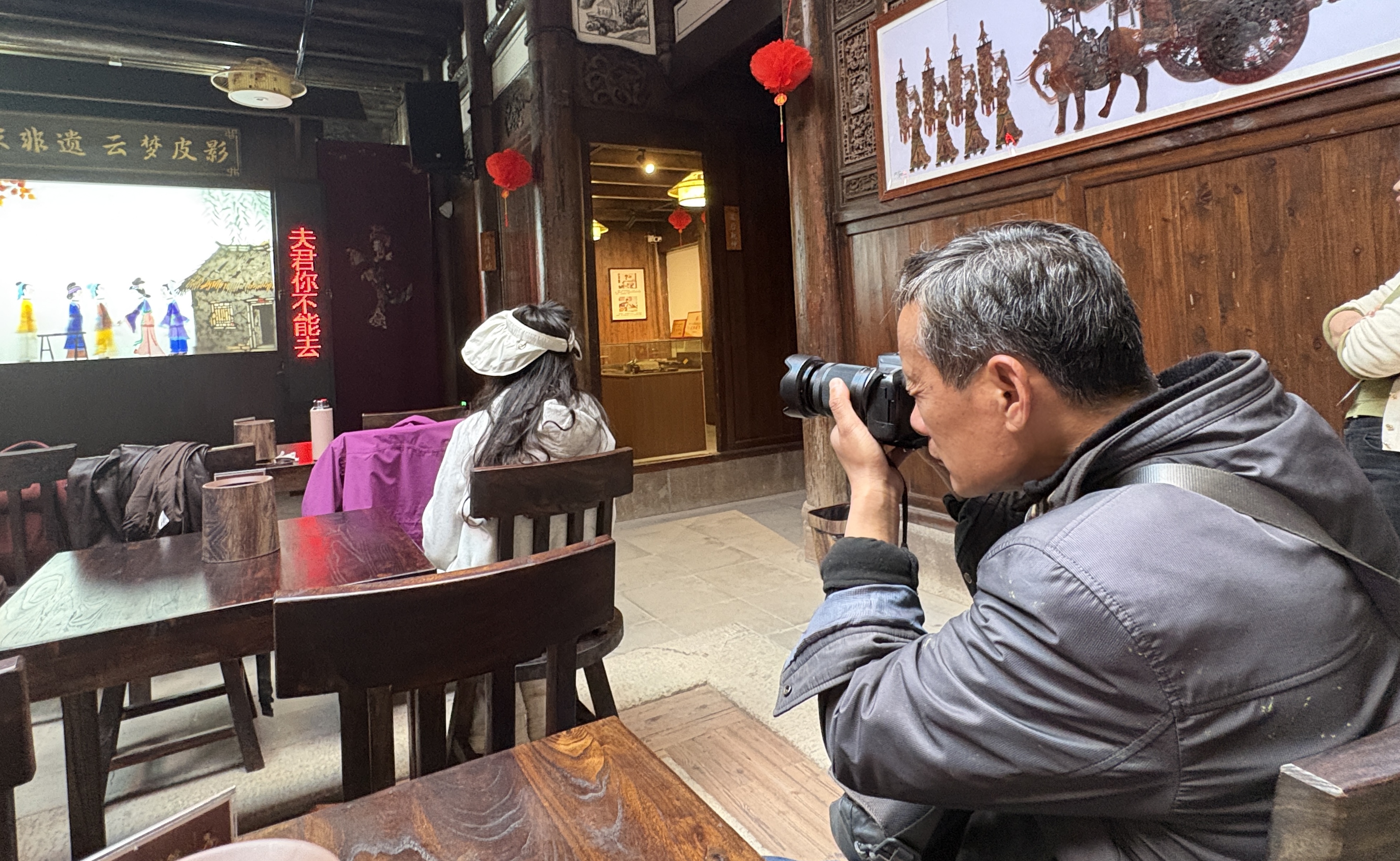 随后,采风队伍走进祥云湾文化旅游区,深度聚焦云梦皮影戏。一方幕布,几条长凳,就构成了皮影戏的天地。两千多年来,一直是老百姓茶余饭后的娱乐。锣鼓响起,皮影摇曳,嬉笑怒骂尽在其中。摄影者们步履不停、快门不断,在实地创作中践行所学,用镜头绘就云梦历史人文与产业发展的新图景。