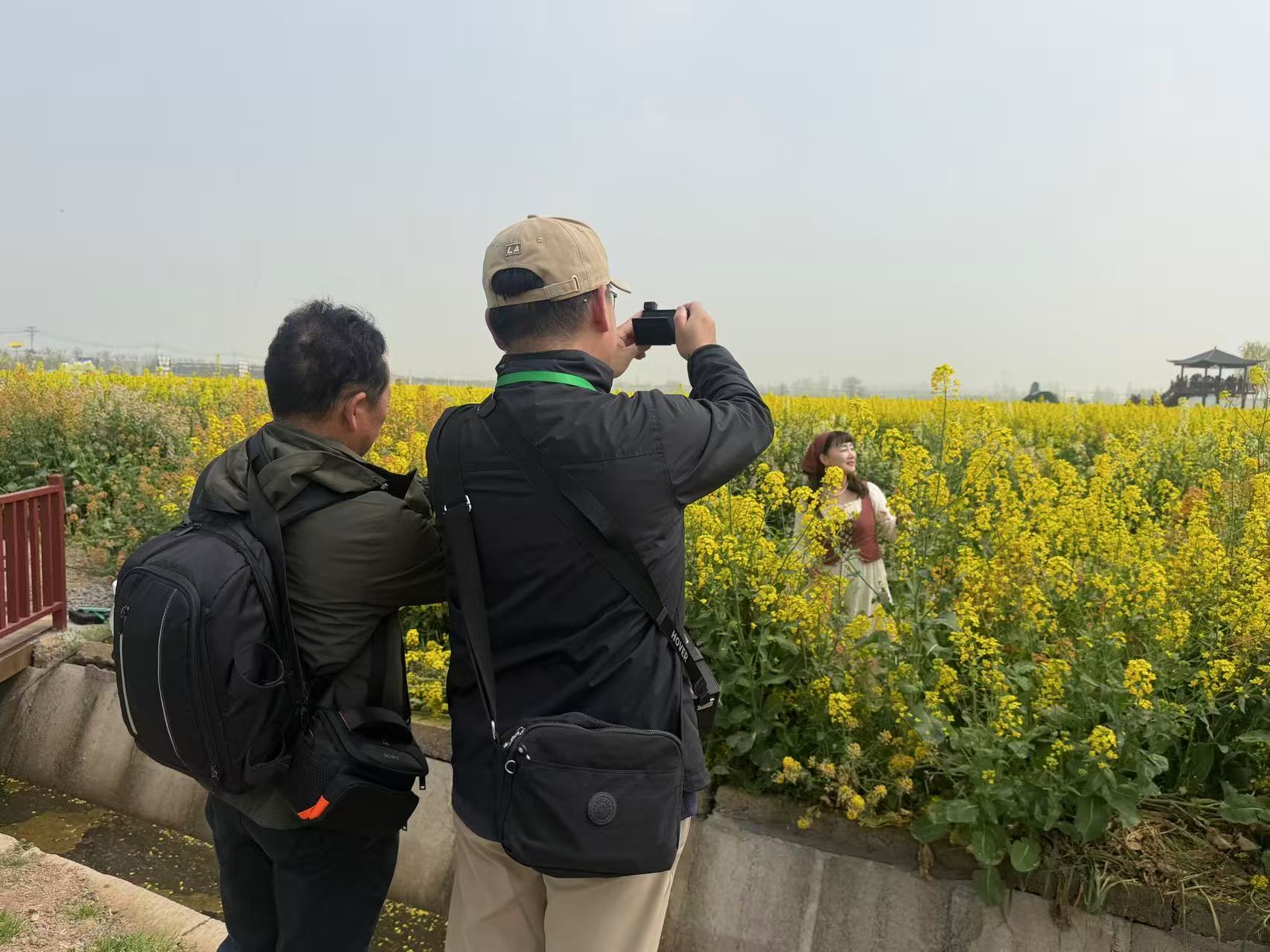 春日里的胡金店镇油菜花海错落有致,摄影者们循着光影,将乡村振兴的田园盛景定格在镜头之中,在自然采风里积累光影运用实操经验。