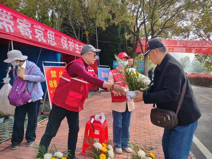 陵园入口处,专门设立的文明祭祀服务点内,清新雅致的鲜花摆放得整齐有序,成为陵园内一道亮眼的风景。面对自带鞭炮、纸钱前来祭扫的群众,志愿者们始终面带微笑,轻声劝导:“大姐,用鞭炮换束花吧,一样能寄托绵长哀思,还安全又环保。”一句句贴心的劝说,一次次真诚的引导,不少市民当场响应,主动换上手捧的鲜花,以更温馨、低碳的方式告别逝者。“这个活动我年年参加,现在直接买鲜花来祭扫,既环保又有意义,心里的敬意也能好好传递。”一位多次参与活动的市民感慨道,如今身边越来越多的同伴选择用鲜花寄托思念。