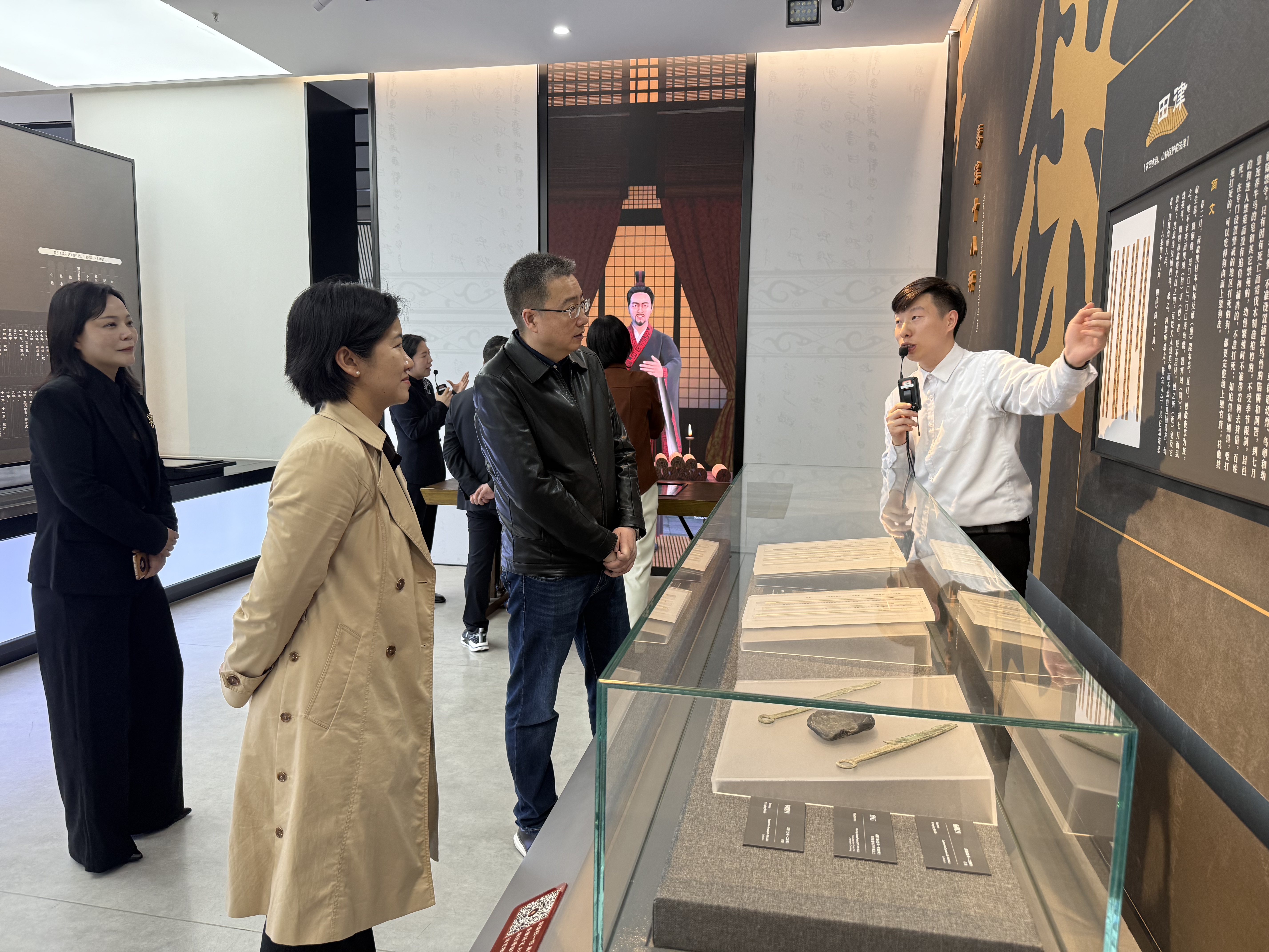 在云梦县博物馆,赵晓展一行实地参观了珍贵历史文物陈列,重点了解云梦秦简、漆器等重要出土文物的保护研究、展陈利用及文化传承情况。