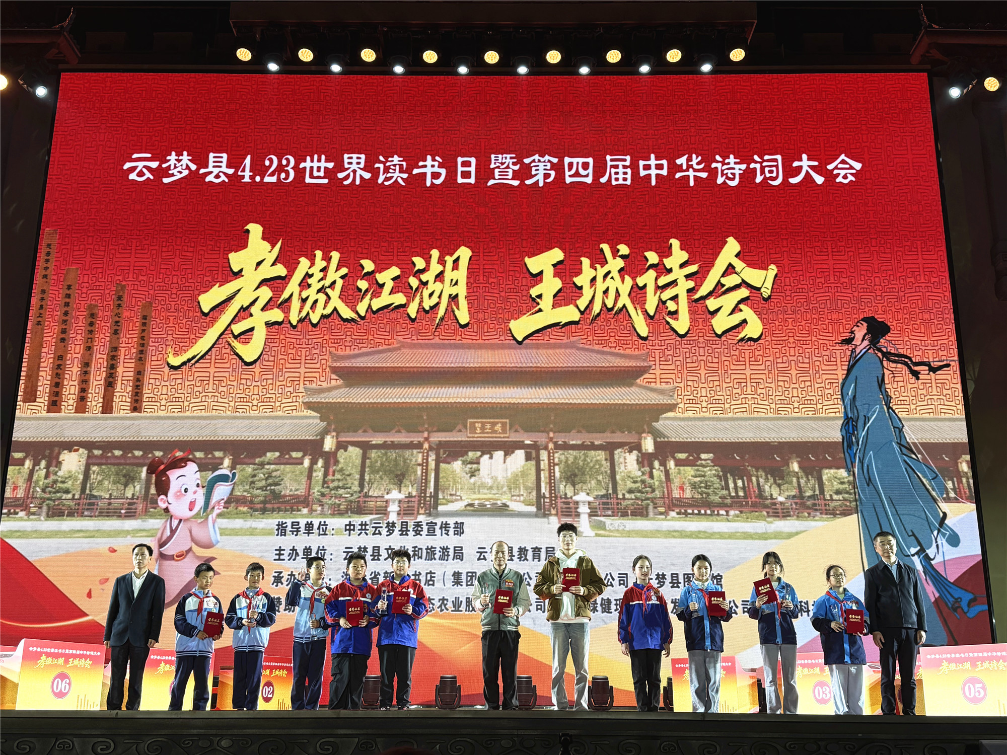 诗韵流淌,孝风绵长。4月23日“世界读书日”当晚,云梦县“孝傲江湖·王城诗会”暨第四届诗词大会决赛在楚王天下火热开赛。近万名观众齐聚一堂,以诗为媒,以孝为魂,上演了一场少儿与成人同台竞技的文化盛宴,在琅琅诗声中传承千年文脉、厚植家国情怀。县领导杨雪莲、许露、张建雄及相关单位负责人参加活动。