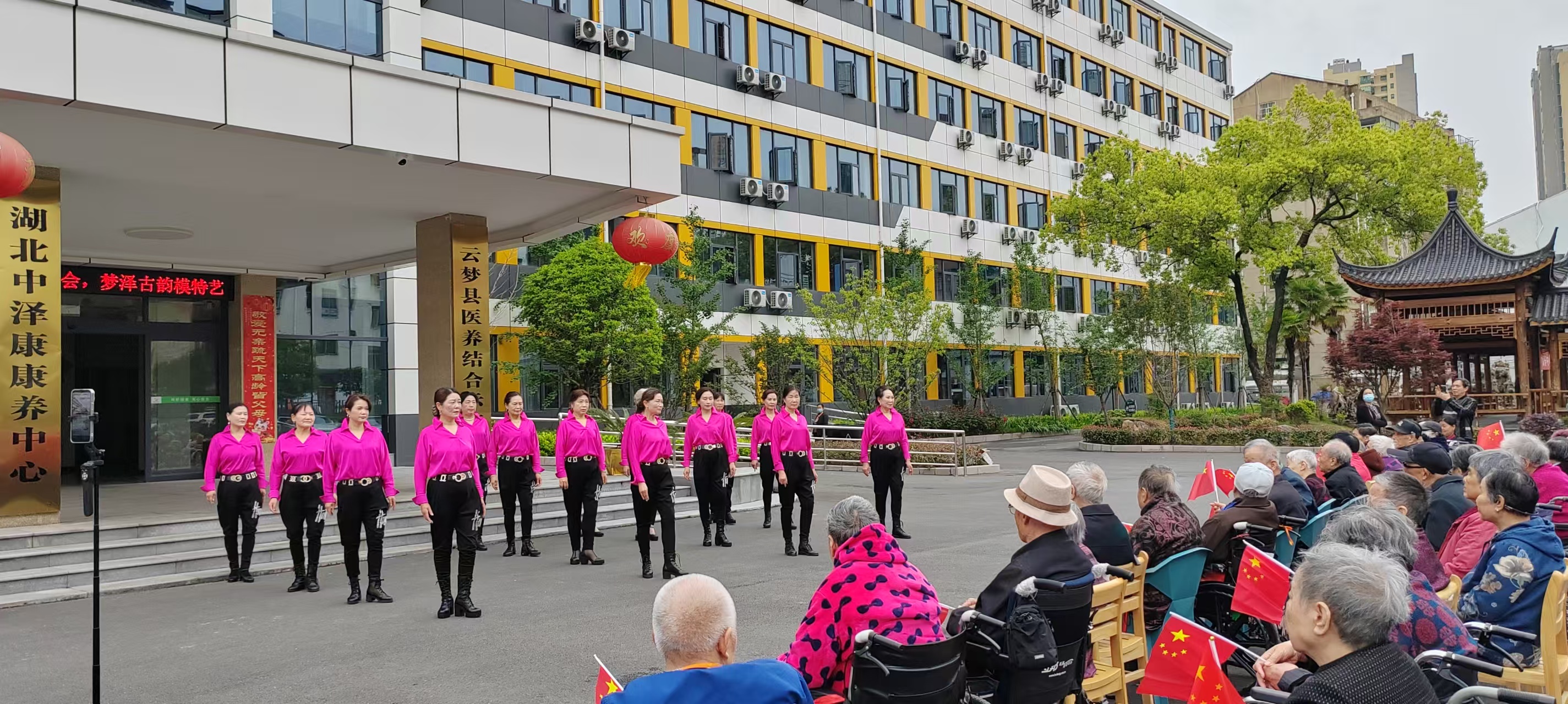 尊老敬老扬美德,文艺送暖润夕阳。为传承弘扬中华民族孝老爱亲传统美德,丰富康养中心老年群体精神文化生活,传递社会爱心与人文关怀,4月29日,云梦县舞蹈专委会梦泽古韵模特艺术团25余名文艺志愿者,走进中泽康康养中心,倾情开展公益慰问专场演出,用优美舞姿、动听歌声为院内长者送上暖心的文艺盛宴。