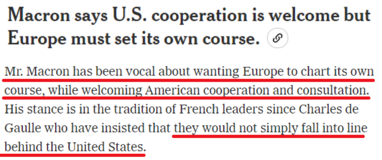 就在七国集团峰会召开前夕的当地时间10日,法国总统马克龙再次强调了欧盟主权与战略自主问题。他直言不讳地表示,欧洲可以和美国合作,但也要有自己的政策,“不会简单地站在美国一边”。