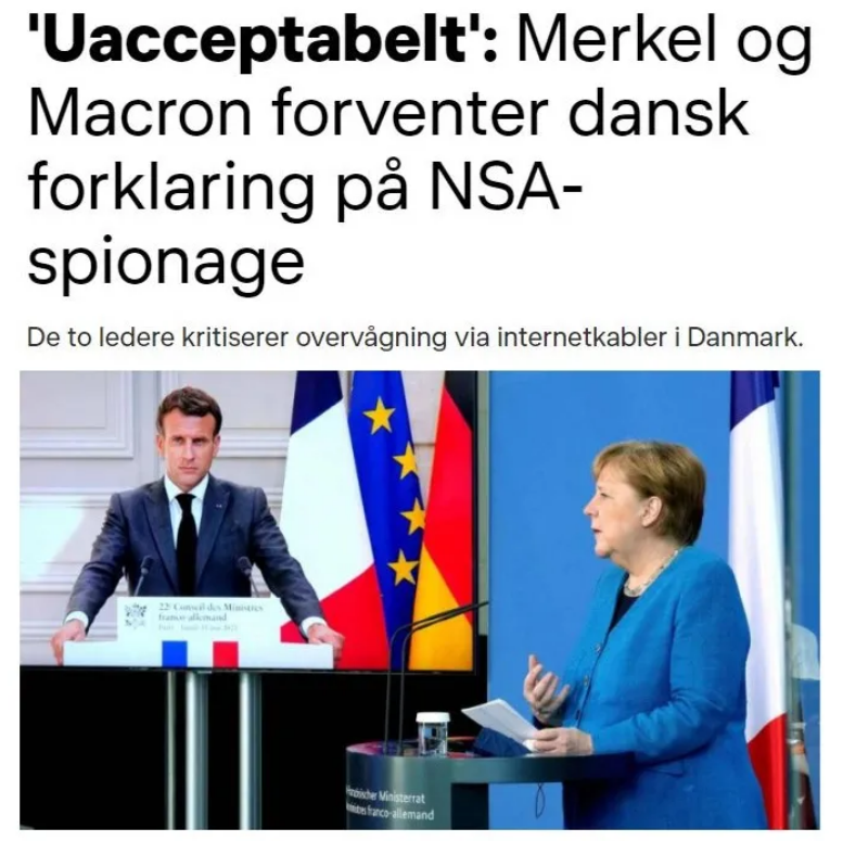 据欧洲媒体上月底披露,美国此前曾在丹麦情报机构协助下监听包括德国总理默克尔在内的众多欧洲政要和官员。包括默克尔和法国总统马克龙在内的欧洲多国领导人事后纷纷表示此举“不可接受”,要求美方给出说法。