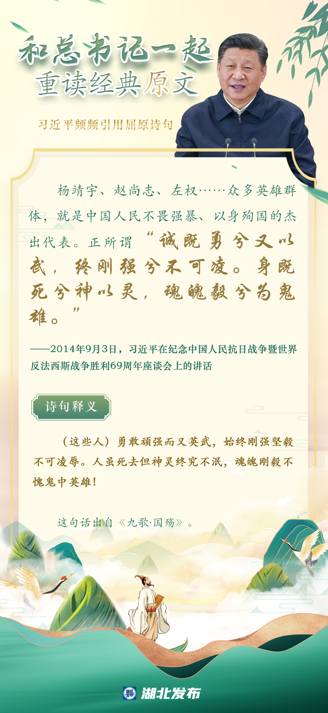 跟着习近平总书记一起纪念屈原,使爱国情怀变成报国行动,用民本思想指引实践,让求索精神创造价值,在实现中华民族伟大复兴中国梦的大道上一路前行,百折不挠!
