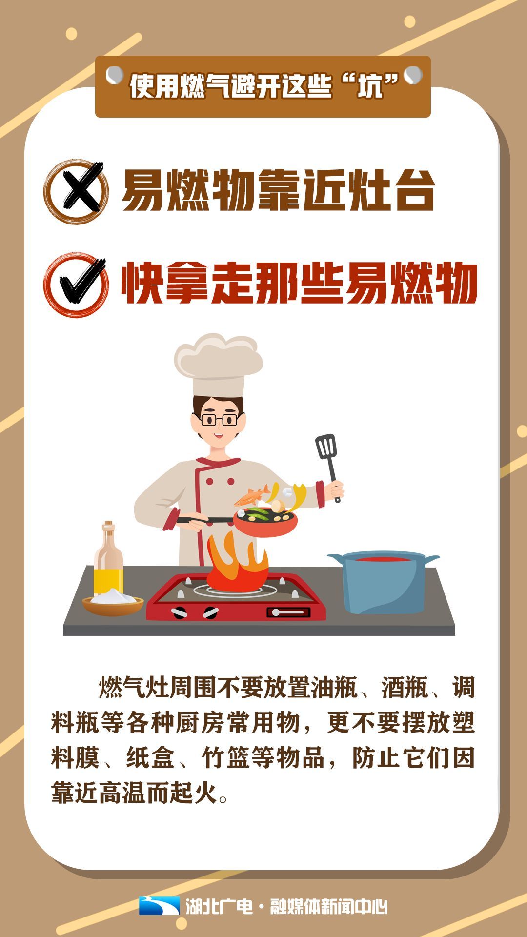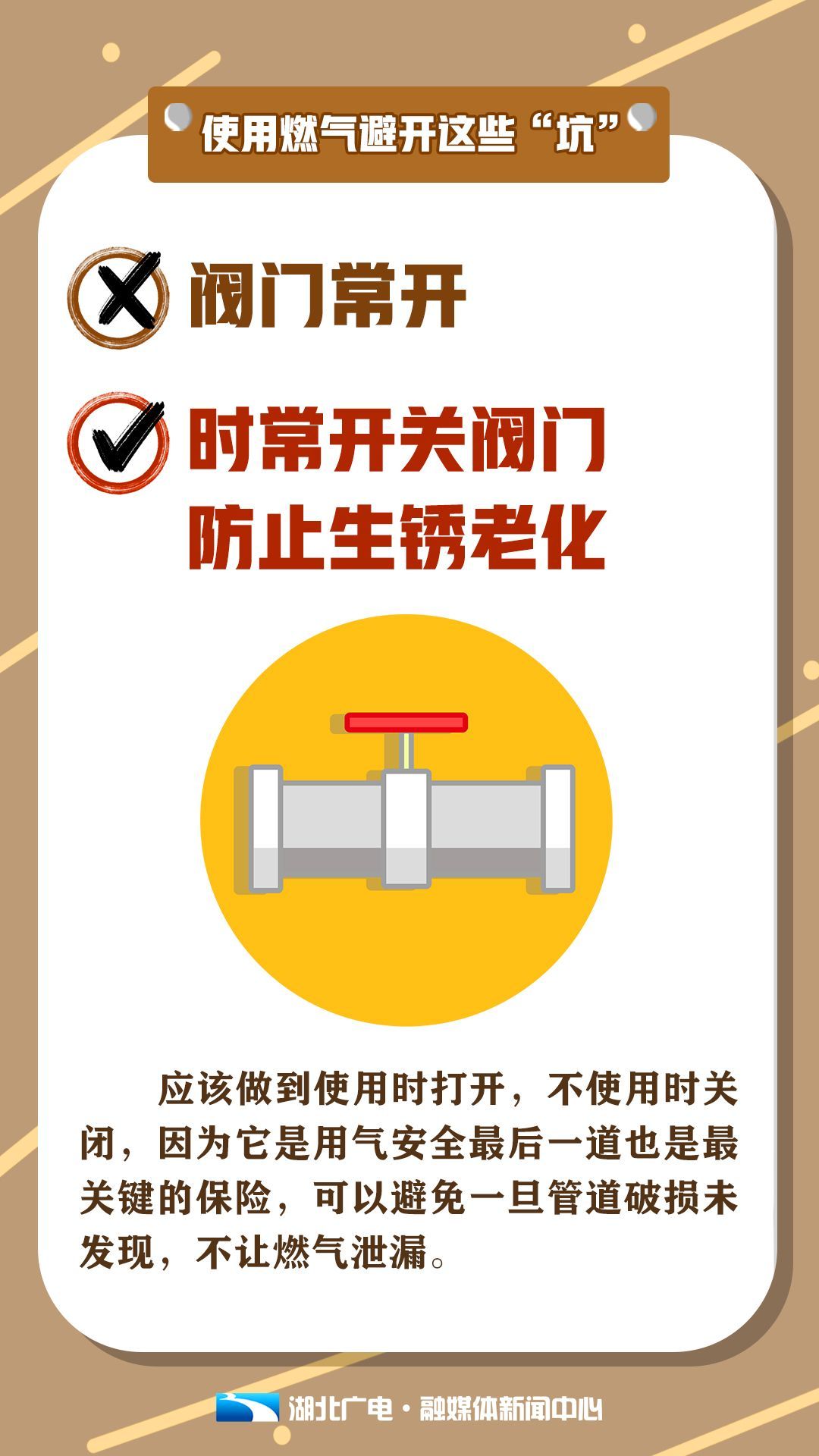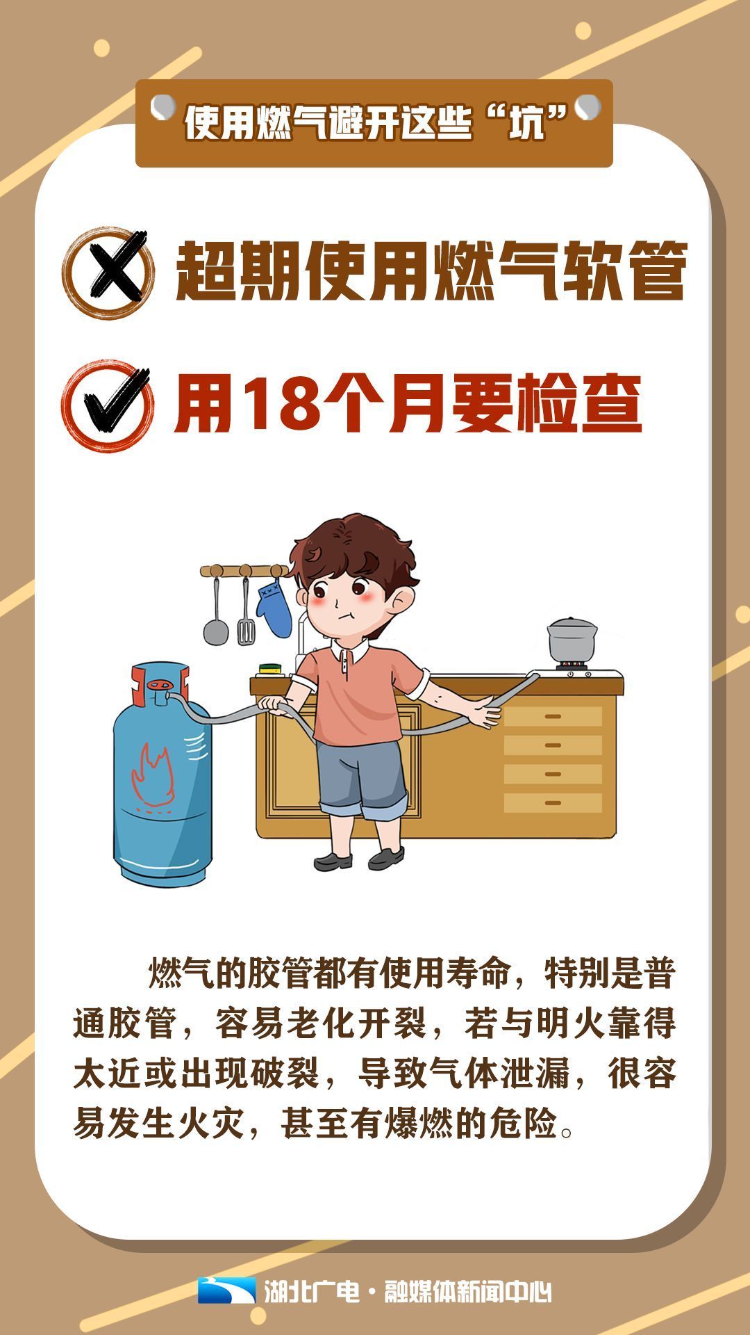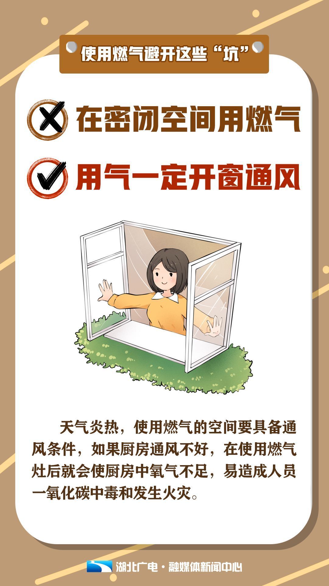 必看!天气炎热,使用燃气要避开这些“坑”! 2021-06-18 08:59 0 夏季,是燃气事故高发的季节, 气温不断攀升, 增加了燃气事故发生的可能性, @所有人, 日常使用燃气请避开这些“坑”, 谨防燃气爆炸! 出品:湖北广电融媒体新闻中心