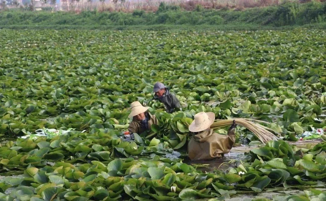 每年4月至10月是睡莲茎秆的采摘旺季,需要大量的劳动力。刘伟的睡莲基地每天都会聘请村民来采摘,一天收入130元。