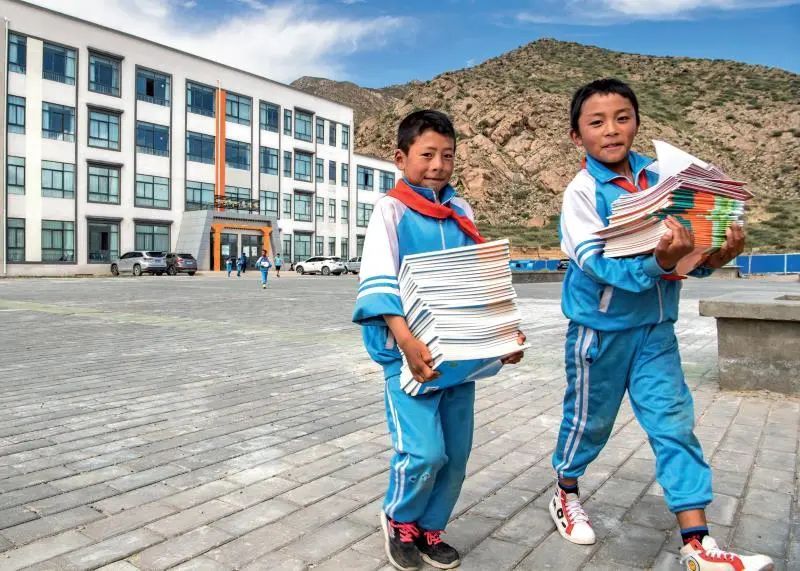 ▲西藏山南市贡嘎县森布日幸福家园九年一贯制学校的学生们在搬新书( 2020年8月24日摄) 孙非摄 / 本刊