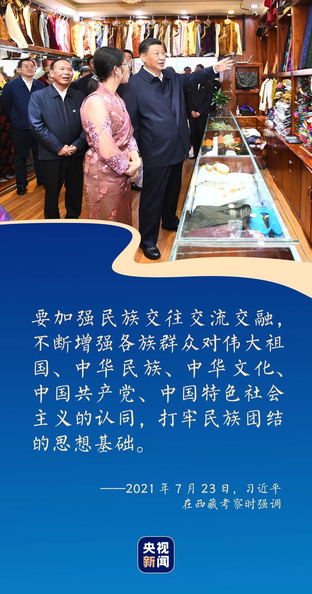 7月22日,习近平步行察看八廓街风貌,走进特色商品店,询问旅游文创产业发展、藏文化传承保护等情况。