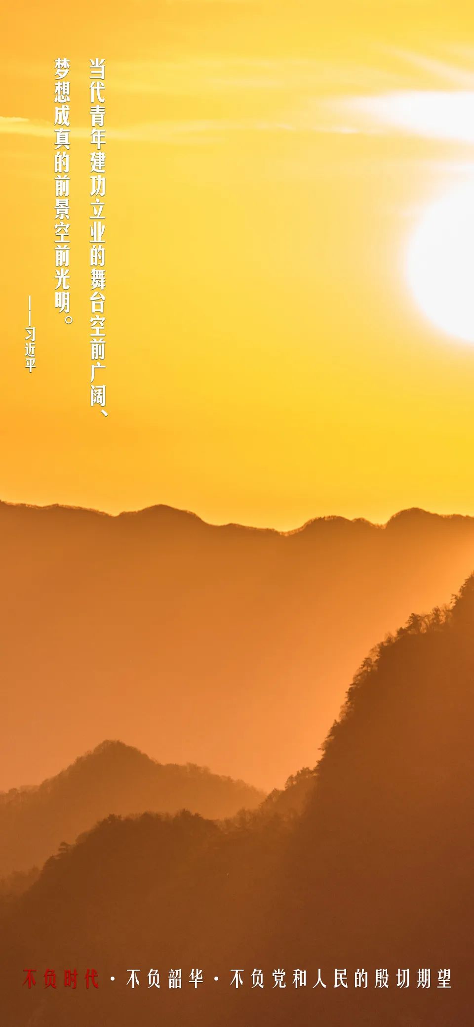 习近平总书记说,新时代的中国青年要以实现中华民族伟大复兴为己任,增强做中国人的志气、骨气、底气,不负时代,不负韶华,不负党和人民的殷切期望!青年要不负的是一个怎样的时代?如何不负韶华,不负党和人民的殷切期望?@全体青年,收藏学习!
