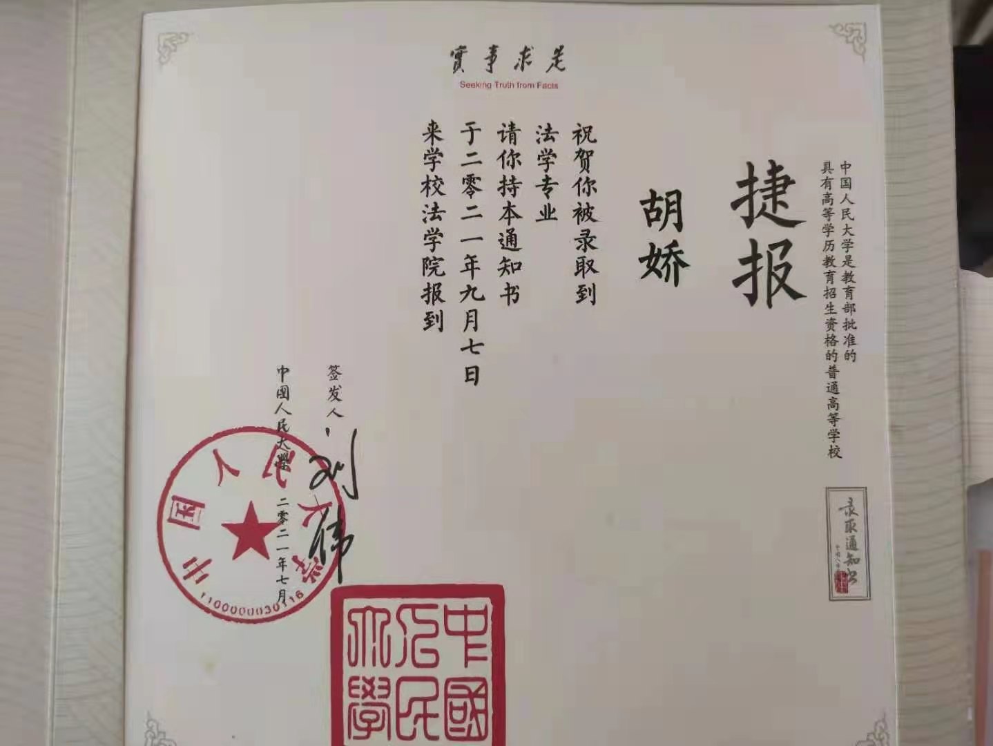 7月28日,云梦县义堂镇红光村村民胡波收到了二女儿胡娇被中国人民大学录取的通知书。这是时隔三年后,胡家收到的第二份大学录取通知书。