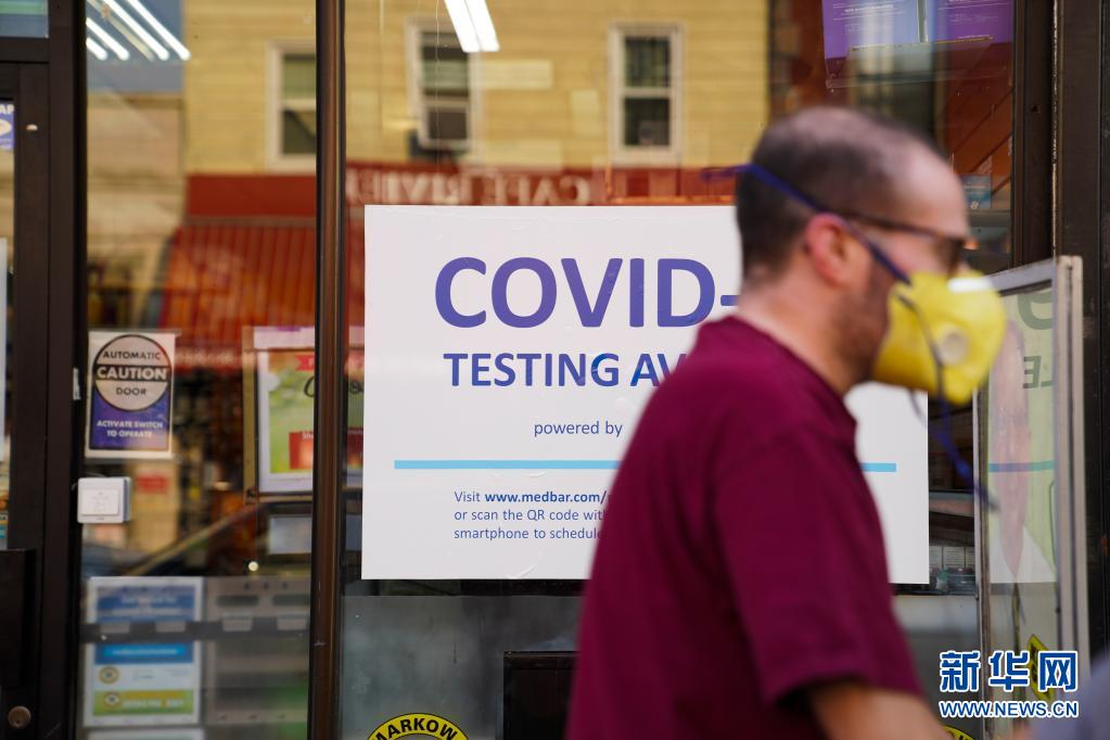 7月26日,行人从美国纽约一家药店的新冠检测广告牌旁走过。新华社记者 王迎 摄