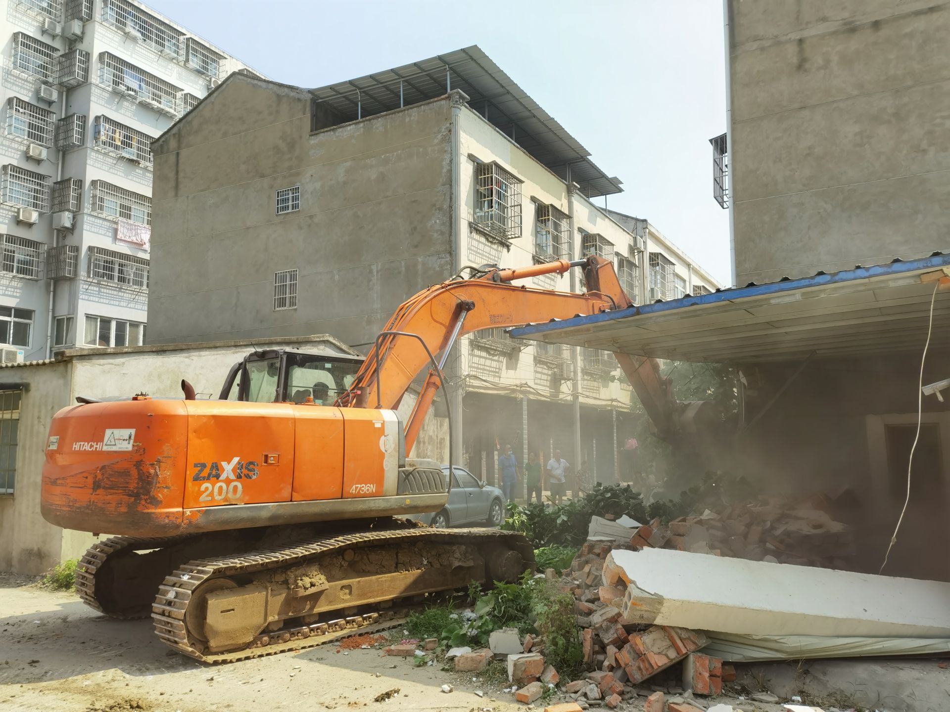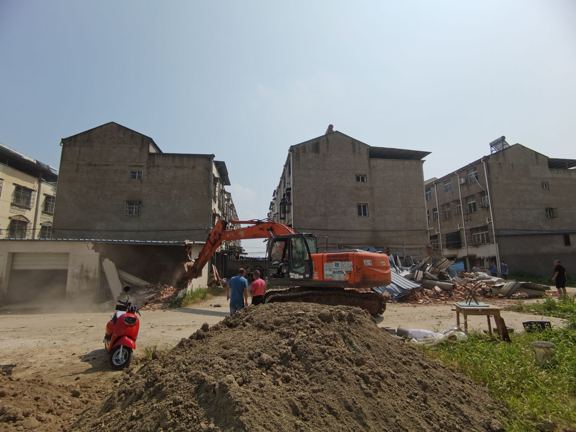 8月4日上午九点,记者在县经济开发区赵许村曲阳河东一号看到,工作人员在城管部门的配合下,正在对该片区内的12户904.1平方米违章建筑进行依法拆除,现场一片繁忙。