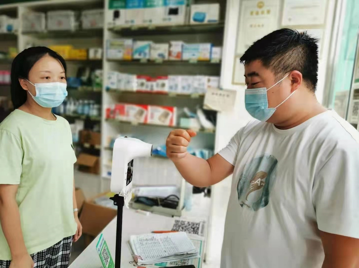 二是加强顾客管理。顾客购药时必须“扫码、测温、戴口罩”,发现健康码为黄码或红码的人员及遇发热人员,立即拔打96120。
