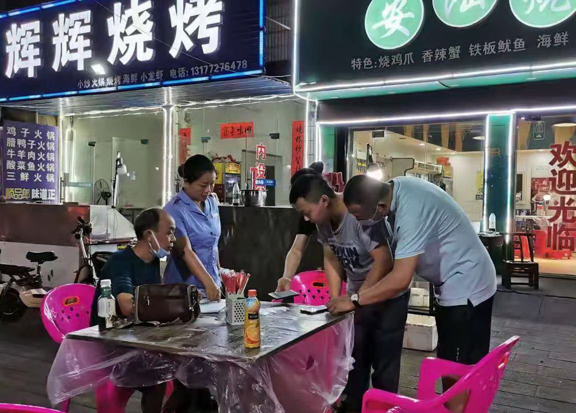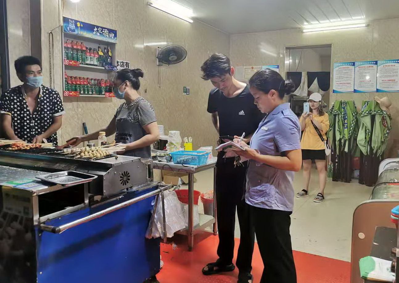 “王师傅,你店里的人都接种了疫苗吗?”“接了”,“接了请把接种记录给我看哈,我们登个记”。8月5日晚9点,云梦县市场监管局工作人员一户不漏地排查夜市餐饮从业人员疫苗接种情况。