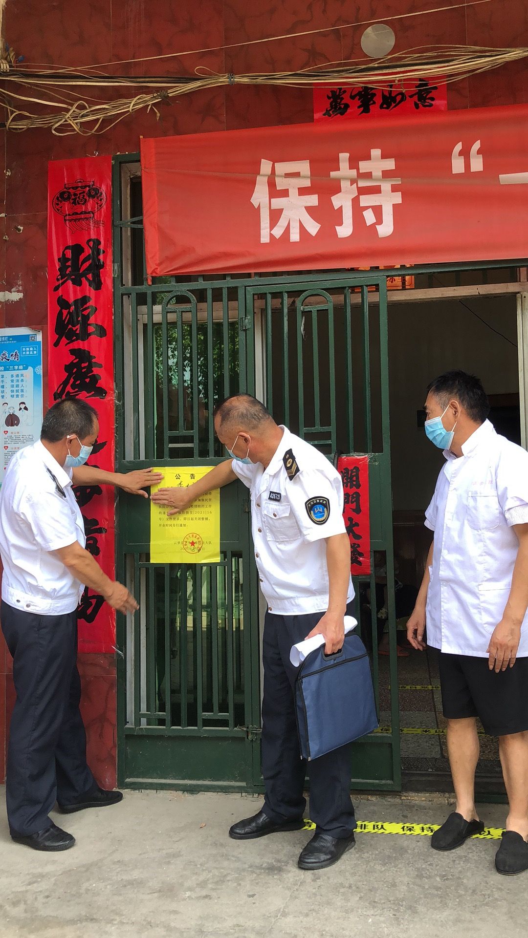 为积极应对当前新冠疫情防控形势,县卫生健康执法大队认真落实监管责任,不断加强公立医疗机构、民营医院、个体诊所等医疗机构日常管理和疫情防控风险隐患排查,对防控措施落实不到位、隐患突出的医疗机构实行挂牌督办整改,必要时予以停业整顿,织密织牢基层医疗机构“哨点”防控网。