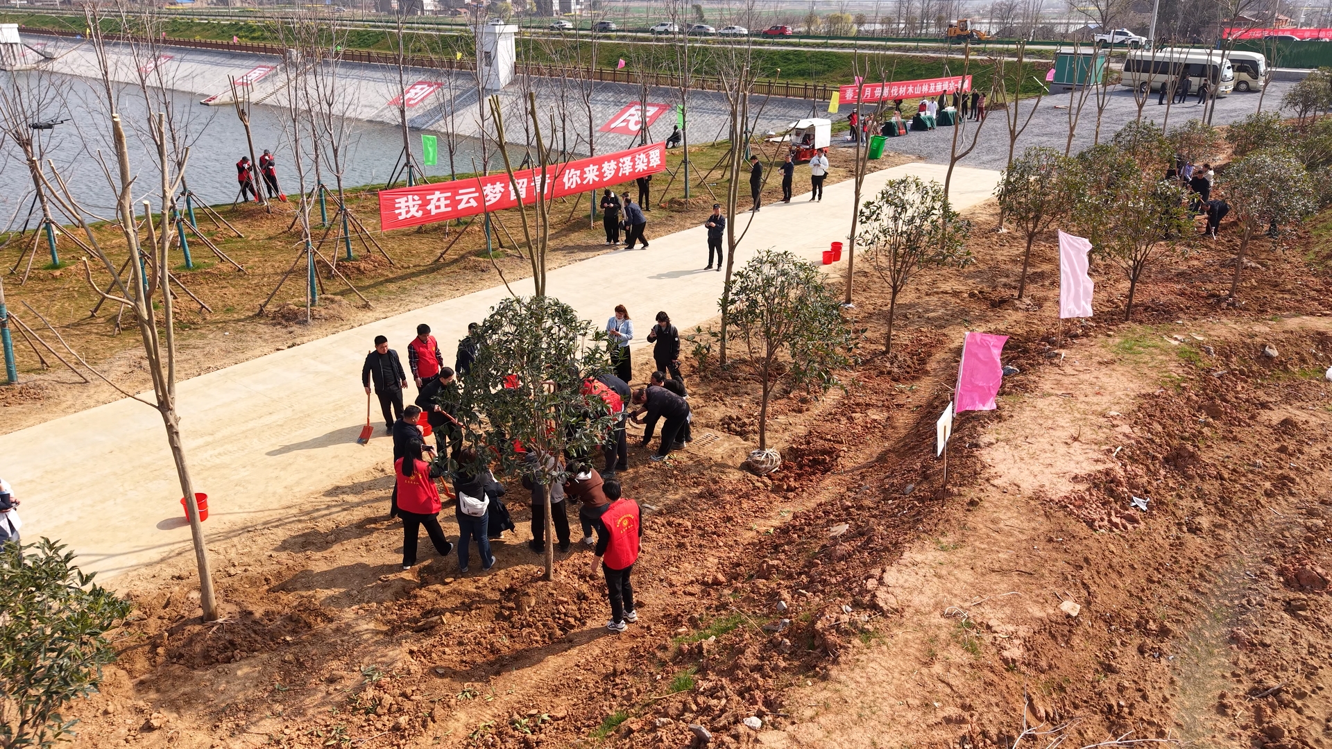 植树现场气氛热烈,大家三五成组、分工协作,扶正树苗、挥锹铲土、填坑夯苗、提桶浇水,道道工序有条不紊、认真细致。经过共同辛勤劳动,一株株新苗错落有致、迎风挺立,为初春的大地增添了勃勃生机与盎然绿意。